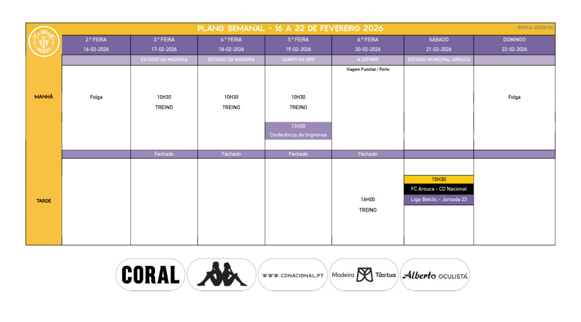 Agenda Semanal – Futebol Profissional | 16 a 22 de Fevereiro
