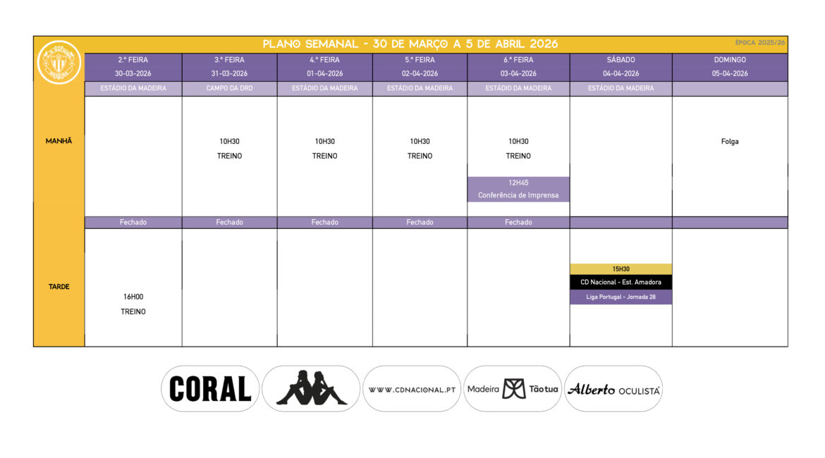 Agenda Semanal – Futebol Profissional | 30 de Março a 5 de Abril