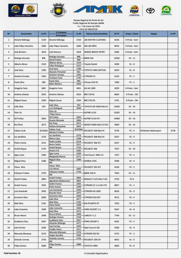 Decorre esta tarde, no salão nobre da Câmara da Ponta do Sol, a apresentação da Rampa Regional da Ponta do Sol. A prova vai para a estrada a 7 de março, sábado, e conta com 35 pilotos à partida.
