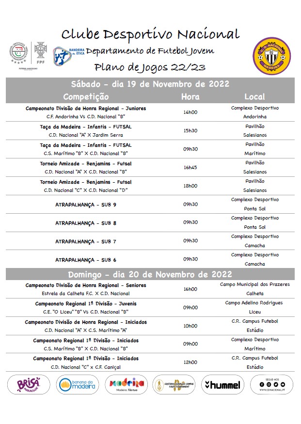 O destaque no sábado vai para o jogo dos Juniores ‘B’ na casa do Andorinha, às 14h00, em Santo António.