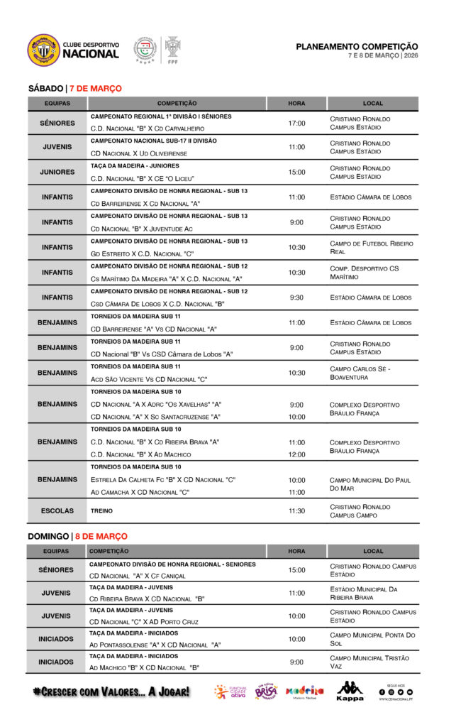 O fim-de-semana arranca em força com intensa atividade já este sábado. Os Escolinhas vão treinar enquanto os Benjamins entram em mais uma jornada dos Torneios da Madeira de Sub-10 e Sub-11.
