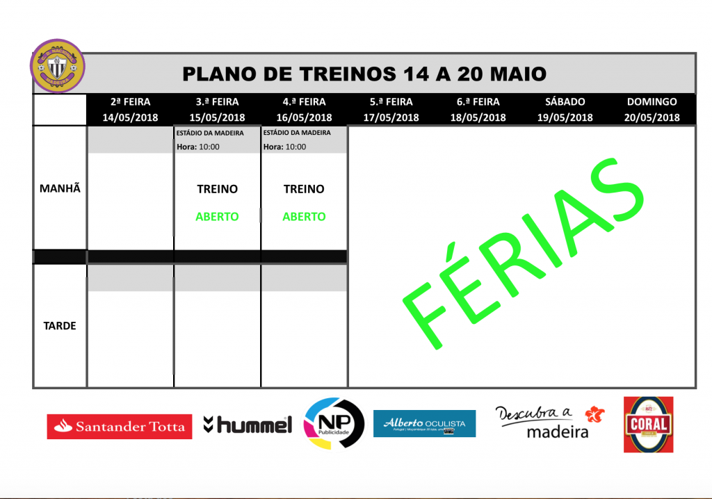 Plano de treinos equipa sénior de futebol para a semana de 14 a 20 maio
