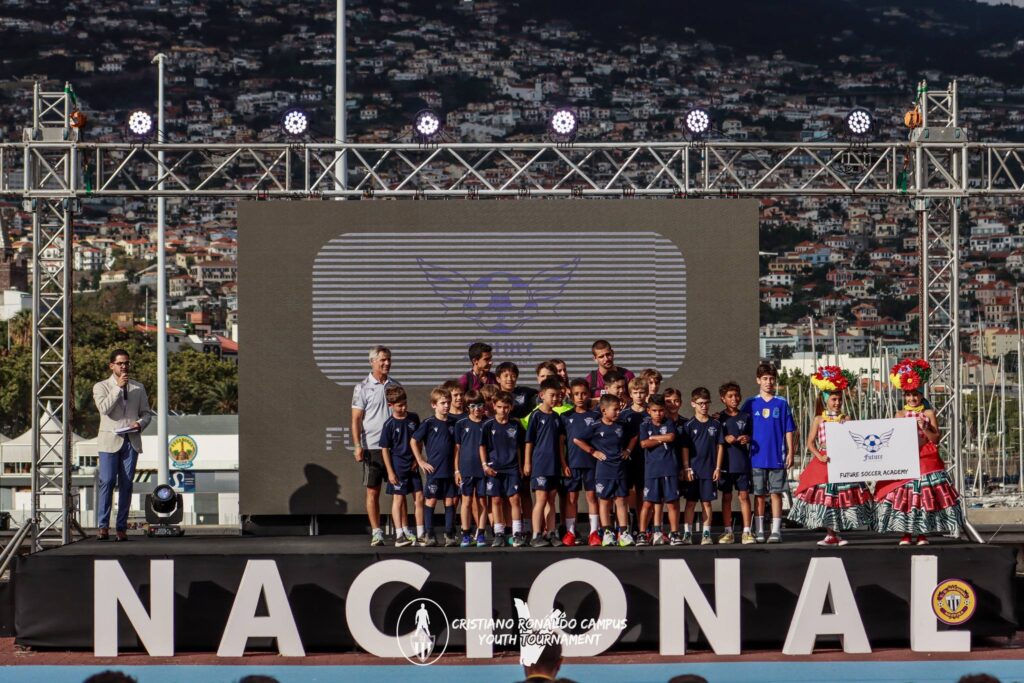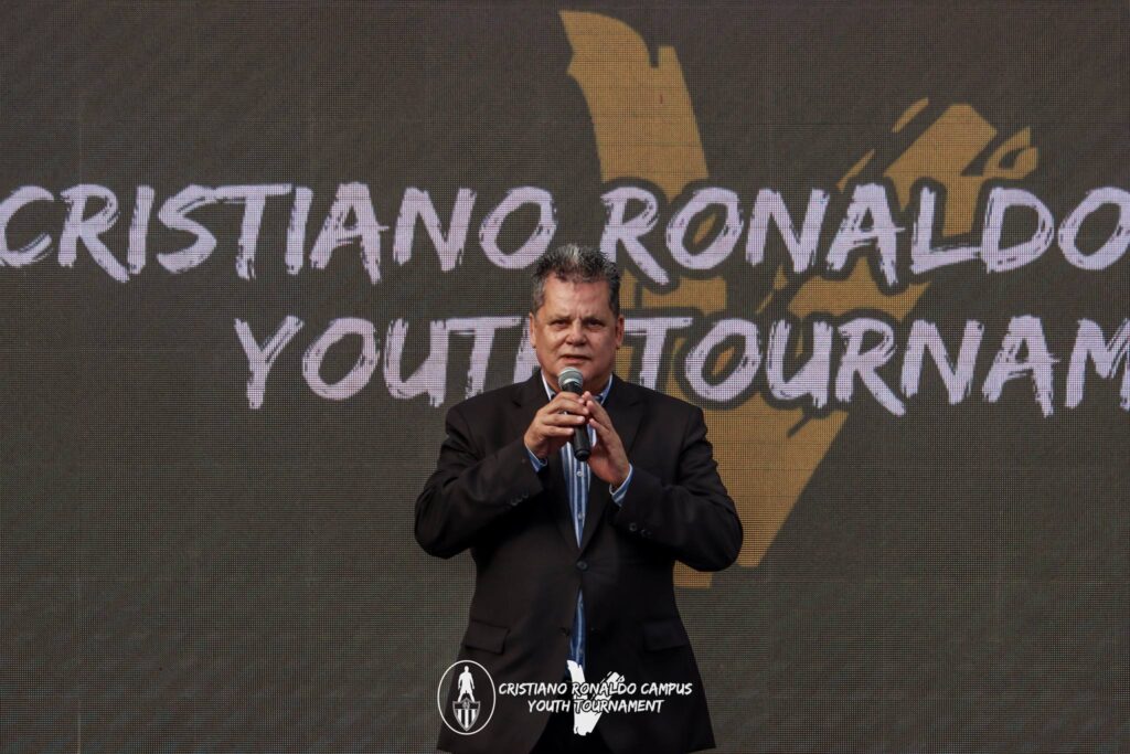 Este torneio tem como grande referência o nosso padrinho, Cristiano Ronaldo, que dá também o nome à nossa Academia. O CR7 consagrou o trabalho como um instrumento fundamental do sucesso. Espero que ele, para vocês, seja um guia da vossa afirmação e do crescimento.”