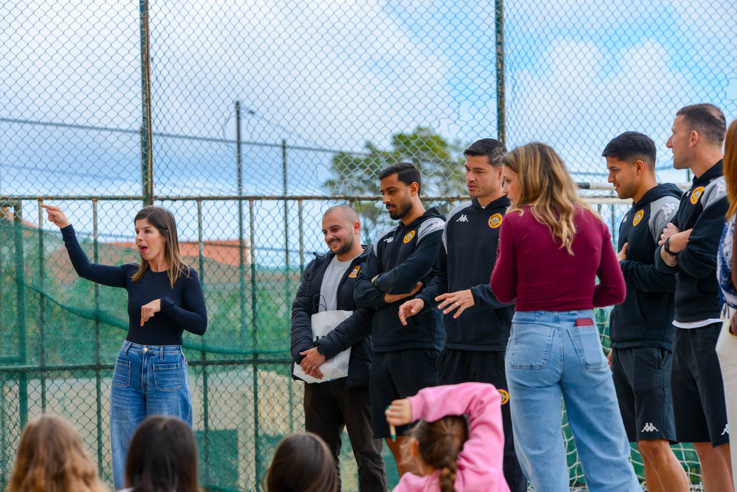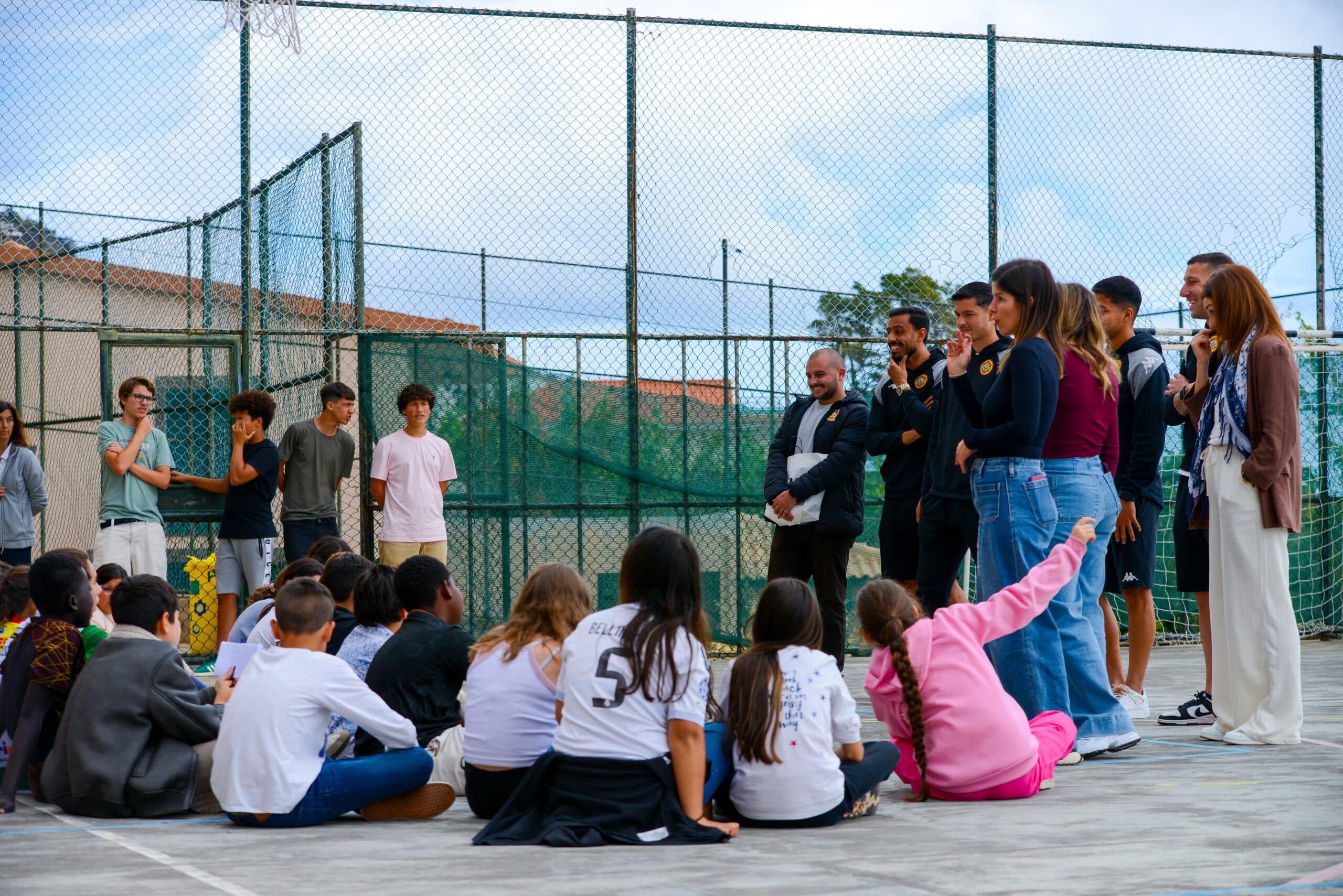 Numa tarde marcada pela alegria e grande animação, os jogadores começaram por responder às curiosidades dos alunos, sempre traduzidas pelas intérpretes de Língua Gestual Portuguesa. Os nossos atletas foram também desafiados a aprender algumas das respostas em LGP, que prontamente acederam com entusiasmo.
